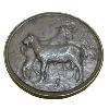 - Das goldene Medaillon mit doppeltem Außenrand. Außen geperlt, innen glatt und abgeschrägt.