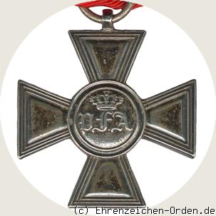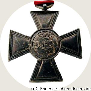 Das Dienstauszeichnungskreuz für 25 Jahre Militärdienst der Unteroffiziere wurde zusammen mit einem vergoldeten Kreuz für Offiziere am 24. Dezember 1838 durch Großherzog Paul Friedrich August gestiftet. Es wurde in 2 Varianten verliehen. Offiziere erhielten das Kreuz in Bronze vergoldet und untere Militärangehörige vom Feldwebel abwärts in Silber. Anlaß zur Stiftung war der 25. Jahrestag des Aufrufs zur allgemeinen Landesbewaffnung durch den Herzog Peter Friedrich Ludwig nach seiner Heimkehr aus dem Exil. Ausgezeichnet wurden Militärangehörigen die dem Vaterland 25 Jahre treu gedient hatten. Nach Abschluß der Militärkonvention mit Preußen wurde die Verleihung an Militärs beendet. Danach wurde das Kreuz noch an Gendarmen und Landdragoner weiter verliehen. Diese mussten jedoch an mindestens einem Feldzug teilgenommen haben. An Militärs sind 103 Kreuze verliehen worden. Insgesamt liegt die Verleihungszahl bei 214 Stück. Als Hersteller ist Sy und Wagner in Berlin bekannt. Quelle: Friedhelm Beyreiß, Der Hausorden und die tragbaren Ehrenzeichen des Großherzogtums Oldenburg 1813-1918.