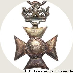 Der Senat der freien Stadt Frankfurt stiftete am 6. Juli 1841 Dienstauszeichnungskreuze nach 50 Dienstjahren beim Militär. Es wurden ein goldenes Kreuz für Offiziere und ein silbernes Kreuz für Unteroffiziere gestiftet. Ausgezeichnet werden sollten langjährige treue Militärdienste. Das Kreuz der Offiziere wurden aus Gold gefertigt und ist in der Gestaltung gleich dem der Unteroffiziere das in Silber gefertigt wurde. Es wurde jeweils nur ein Kreuz hergestellt. Das Kreuz aus Gold für Offiziere fertigte der Goldarbeiter Johannes Wirsing in Frankfurt. Das Kreuz aus Silber fertigte die Firma Hessenberg & Co. aus Frankfurt. Das Kreuz für Offiziere wurde nur 2-mal verliehen. Am 6. Juli 1841 wurde Oberst Carl Philipp Deeken mit dem Kreuz ausgezeichnet. Nach dessen Tod am 20. März 1856 wurde das Kreuz zurückgeliefert. Die 2. Verleihung erfolgte an Oberst Wilhelm Hofmann am 9. Oktober 1845. Das hier gezeigte Kreuz für Unteroffiziere wurde hingegen nur 1-mal verliehen. Der Feldwebel und Bürgermeister-Ordonanz Heinrich Jung erhielt das Kreuz in Silber am 16. Mai 1845. Dieses Kreuz ist nicht mehr auffindbar also verschollen. Die Abbildung zeigt eine hochwertige Nachbildung in Silber. Diese Dienstauszeichnungen mit 2 bzw. 1 Verleihung sind das Seltenste was als Dienstauszeichnung verliehen wurde. Ein Original ist auf dem Sammlermarkt nicht erhältlich. Hochwertige Nachprägungen sind auch selten und erzielen einen guten 3-stelligen Preis.