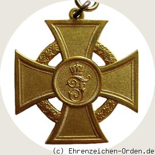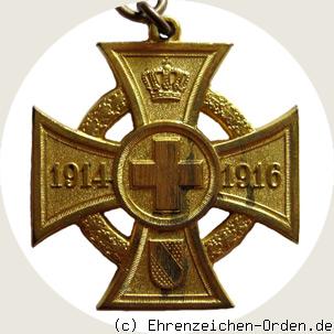 Großherzog Friedrich II. erneuerte das ursprünglich 1871 gestiftete Erinnerungs-Kreuz für freiwillige Hilfstätigkeit im Kriege am 24. Dezember 1915. Verliehen wurde das Kreuz an Männer und Frauen die sich während des Krieges bei der Verwundeten- und Krankenpflege oder sonstigen freiwilligen den Krieg unterstützenden Tätigkeiten verdient gemacht haben. Bei gleichen Verdiensten die im Kriegsgebiet geleistet wurden wurde dieses Kreuz mit Eichenlaub zwischen den Kreuzarmen verliehen. Es wurden Kreuze in Goldbronze, Weißmetall vergoldet hergestellt. Das Kreuz war nicht rückgabepflichtig. Eine Veröffentlichung oder Verleihungsliste wurde nicht geführt. Quelle: J. Nimmergut, Deutsche Orden und Ehrenzeichen bis 1945, Bd.1, 1997.