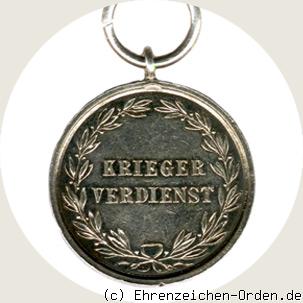 Die Krieger-Verdienstmedaille wurde ca. 1835 durch König Friedrich Wilhelm III. gestiftet. Verliehen wurde die Medaille nur an nichtpreußische Soldaten. Die erste Verleihung fand 1835 (angenommenes Stiftungsdatum) an die Ehrenwache des Schlosses in St. Petersburg , während des Besuchs des Königs, statt. In den nachfolgenen Jahren wurde die Medaille meist an russische Soldaten ab dem Feldwebel abwärts verliehen. Diese erste Form der Medaille hatte auf der Rückseite die Schiffre – F W III. -. Diese Form wurde in 2 Varianten verausgabt. Die erste Prägung hat eine mitgeprägte Öse und eine grobere Zeichnung z.B. des Lorbeerkranzes. Die 2. Prägung ist feiner gearbeitet und hat eine angelötete gewöhnliche Öse mit Bandring. Im Jahre 1872 wurde der Stempel der Rückseite geändert und zeigt jetzt die Schiffre – W R – und ist jetzt von der Zeichnung gleich mit dem Militär-Ehrenzeichen 2. Klasse von 1864. Ab 1888 wurde die Medaille auch am weiß-schwarzem Band für Nichtkämpfer verliehen. Weiterhin fand die Medaille auch Verwendung als Tapferkeitsauszeichnung in den Kolonien für farbige Soldaten und Unteroffiziere die auf deutscher Seite kämpften. Im 1. Weltkrieg wurde die Medaille ebenfalls an verbündete Soldaten verliehen weil diese für die Auszeichnung mit dem Eisernen Kreuz nicht in Frage kamen. Quelle: J. Nimmergut, Deutsche Orden und Ehrenzeichen bis 1945, Bd. II, 1997.