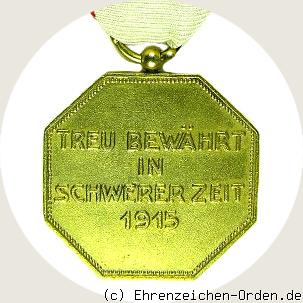 Gestiftet wurde die Kriegs-Ehrenmedaille am 25. Oktober 1915 durch Fürst Leopold IV. Verliehen wurde die Medaille für Verdienste im Feindesland und für Verdienste im Heimatland. Ausgezeichnet wurden Männer, Frauen und Jungfrauen die sich durch treue Arbeit in einem Dienstverhältnis oder in einer freiwilligen Tätigkeit um die Wohlfahrt, insbesondere der Pflege der verwundeten und erkrankten Soldaten oder anderer Arbeit für das Rote Kreuz Verdienste erworben haben. Unterschieden wurde der Verdienst im Feides- oder Heimatland durch Verleihung an einem anderen Band. Für Verdienste vorm Feind wurden 459 und für Heimatverdienst 1249 Medaillen verliehen. Hersteller war C.F. Zimmermann in Pforzheim. Quelle: J. Nimmergut, Deutsche Orden und Ehrenzeichen bis 1945, Bd. II, 1997.