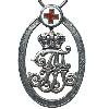 Runde silberne Medaille mit erhöhtem, abgestuften Rand. Oben eine angeprägte, parallel stehende, kleine Öse die auf einem kleinen Steg sitzt.