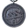 Runde Medaille aus Kupfer mit erhöhtem Rand. Oben eine angelötete gewöhnliche Öse mit Bandring.