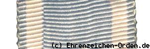 Kreuz aus Silber. Die Kreuzarme sind silbern bordiert und blau emailliert. Die Kreuzarmenden sind leicht nach innen gebogen und haben abgeschrägte Spitzen. Vorder-und Rückseite mit rundem, silbernen Medaillon. Auf dem oberen Kreuzarm eine Agraffe mit kleinem Ring und Bandring.