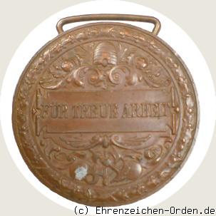 Diese Medaille wurde am 11. November 1895 durch den Großherzog Friedrich I. gestiftet um Arbeiter oder Angestellte zu würdigen, die eine vorwurfsfreie Dienstzeit von mindestens 30 Jahren in ein und demselben Dienstverhältnis hinter sich hatten und treu ihre Pflicht und Gesinnung gegenüber dem Großherzog und dem Vaterland erfüllten. Die abgeleistete Militärzeit war anrechnungsfähig. Der Beginn der Dienstzeit war mit einem Mindestalter von 25 Jahren verbunden. Neben den privaten Dienstverhältnissen waren auch Angestellte in Staatsdiensten empfangsberechtigt. Zu diesen gehörten exakt aufgeführte Bereiche: Straßen und Wegwärter, Rheinwärter und Flußbauarbeiter, Bahnangestellte, Arbeiter in Werkstätten und Magazinen, Matrosen, Land- und Waldarbeiter, Arbeiter auf Fähren und in Zolldiensten. Verleihungsdatum war jährlich der Geburtstag des Großherzogs am 9. September. Geändert wurde 1908 die Umschrift auf der Vorderseite von Grosherzog in Grossherzog. Ab 1916 wurde die Medaille in einer verkupferten Eisenlegierung hergestellt. Die Verleihungen liegen bei ca. 6.000 Stück. Quelle: J. Nimmergut, Deutsche Orden und Ehrenzeichen bis 1945, Bd. I, 1997.