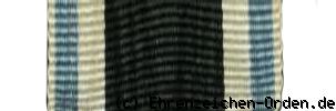 Kreuz aus Silber. Die Kreuzarme sind silber bordiert. Die Innenseiten weiß emailliert. Vorder- und Rückseite mit aufgelegtem runden, goldenen (seit 1918 Silber vergoldet), emaillierten Mittelschildern. Am oberen Kreuzarm eine kuglige Öse mit Bandring. Im Medaillonring der Hersteller – G. H. – und die Silberpunze 950.