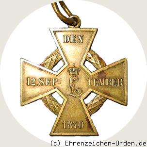 Gestiftet wurde das Kreuz von Großherzog Ludwig III. am 12. September 1870. Anlass war der Geburtstag des Herrschers. Ausgezeichnet wurden Militärangehörige ohne Unterschied des Ranges die sich im Kriege vor dem Feind durch besondere Einsicht, Tapferkeit und Geistesgegenwart Verdienste erworben haben. Die Auszeichnung war ursprünglich auf den Krieg beschränkt. Es wurden aber noch später Kreuze verliehen bis wahrscheinlich 1885. Der Entwurf stammt von Prof. Chr. Schnitzspahn. Die Verleihungszahl liegt bei ca. 550 Stück. Gefertigt wurden die Kreuze aus Geschützbronze. Das Kreuz war nicht rückgabepflichtig. Privat beschaffte Zweitstücke haben meist gekörnte Kreuzarme und eine gewöhnliche Öse mit Bandring. Quelle: J. Nimmergut, Deutsche Orden und Ehrenzeichen bis 1945, Bd. I, 1997.