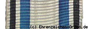- Band 1 Kriegsband: Halsband 53 mm, Rand weiß 2 mm, Seitenstreifen schwarz/weiß je 3mm, blau 5 mm Mittelstreifen weiß 24 mm.
