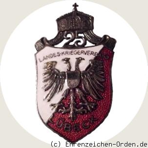 Die Veteranen- und Kriegerverbände der Freien und Hansestadt Lübeck und Umgebung schlossen sich 1894 zum Landesverband Lübeck zusammen. Dieses Ehrenzeichen wurde an Mitglieder verliehen die 25 Jahre Mitglied des Verbandes waren. Die Stiftung wird daher um 1919 angenommen. Der Landesverband Lübeck stiftete außer diesem Abzeichen 2 weitere Ehrenzeichen. Das Verdienstkreuz 1. Klasse als Steckkreuz mit Eichenlaub (3 Blätter) auf dem oberen Kreuzarm und das Verdienstkreuz 2. Klasse am Band. Die Kreuze sind von der Gestaltung her gleich. Ein Kreuz in Form des Eisernen Kreuzes mit breitem Eichenlaubkranz zwischen den Kreuzarmen. Auf der Vorderseite ein aufgelegtes, weiß/rot emailliertes Schild wie bei diesem Abzeichen. Die Rückseite hat ein mitgeprägtes, rundes Mittelschild mit der Aufschrift – Für Verdienst im Kriegervereins Wesen – (Gestaltung wie bei dem preußischen LKV). Auf Grund der Größe des Landeskriegerverbandes Lübeck sind die Abzeichen sehr selten. Der Landeskriegerverband bestand bei der Gründung des Kyffhäuserbundes aus nur 16 Vereinen mit 2815 Mitgliedern. Von der Größe vergleichbar mit Reuß jüngere Linie oder Schaumburg-Lippe.