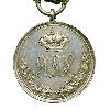 Kreuz aus Gold oder Silber vergoldet mit nach außen breiter werdenden Kreuzarmen. Die Kreuzarme sind auf der Vorderseite mit grüner halbrund erhabener Glasemaille gefüllt. An den Enden ist die Füllung abgeschrägt. Die Zwischenräume der Kreuzarmen sind mit vergoldeten Verzierungen (Spangen) ausgefüllt. Die Rückseite der Kreuzarme sind glatt und aus vergoldetem Silber. Vorder- und Rückseite mit aufgelegtem goldenem Medaillon. Am oberen Kreuzarm eine angelötete gewöhnliche Öse mit Bandring.