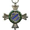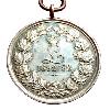 Silberne Medaille mit kleinem Rand. Oben eine angelötete Öse mit Bandring.