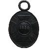 - Goldenes, rundes Medaillon mit erhöhtem Rand. Auf weißem Grund verschnörkelten Buchstaben – F – W -.