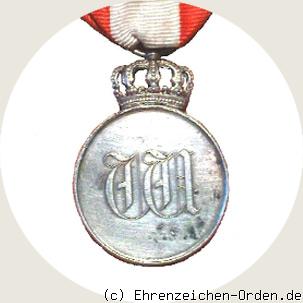 Die 1. Form der Medaille wurde am 18. Mai 1842 durch König Friedrich Wilhelm IV als „Armee-Medaille“ gestiftet und hat auf der Rückseite die Initialien – F – W – IV -. Erhalten haben diese Medaille die Grenadier-Kompanie, die als Ehrenwache für den König bei der silbernen Hochzeit von Zar Nikolaus I. und seiner Frau Alexandra, Prinzessin von Preußen, eingeteilt waren. Verliehen wurden nur 128 Stück. Unter König Wilhelm I. wurde die Medaille neu belebt und wieder verliehen mit der Schiffre – W -. Diese Auszeichnung wurde an Zivilpersonen durch das Zivilkabinet oder für Militärpersonen durch das Militärkabinett verliehen. Über die Gründe der Verleihung ist nichts bekannt da es keine Statuten oder Anordnungen gibt. Bis ins Jahr 1908 war die Medaille aus Silber danach aus vergoldetem Silber, Kupfer. Ab 1917 wurden Medaillen aus vergoldetem Feinzink gefertigt. In Feinzink sind Medaillen mit geschlossener Königskrone bekannt. Quelle: J. Nimmergut, Deutsche Orden und Ehrenzeichen bis 1945, Bd. II, 1997.