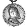 Runde Medaille aus Silber mit Rand. Oben eine angelötete gewöhnliche Öse mit Bandring.