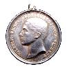 Runde Medaille aus Silber mit erhöhtem Rand. Oben eine angelötete gewöhnliche Öse mit Bandring.