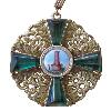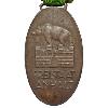 Runde Medaille mit Rand. Oben eine angelötete breite eckige Öse für das Band.