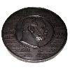 Runde Medaille aus Silber ohne erhöhten Rand. Oben ein breiter angelöteter Henkel zum durchziehen des Bandes.