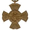 Achtspitziges goldenes Kreuz. Vorder-und Rückseite mit aufgelegtem runden Medaillon. Die Kreuzarme weiß emailliert und gold gerändert. Auf der Vorderseite durch die Mitte 2 goldene, antike Schwerter. Zwischen den Kreuzarmen grün emaillierte Segmente in Form der Rautenkrone, auf der Vorderseite von den Schwertern überlagert. In der Mitte des oberen Kreuzarmes eine angelötete Öse mit Bandring.