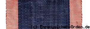 Silbernes Kreuz mit dunkelblau emaillierten, silbern bordierten Kreuzarmen. Vorder- und Rückseite mit aufgelegtem Mittelschild. Am oberen Kreuzarm eine kuglige Öse mit kleinem Schaft und Bandring.