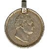 Silberne Medaille mit erhöhtem Rand. Oben eine zylinderförmige Öse mit Bandring, die mit einem Stift befestigt ist.