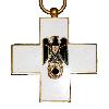 Rundes, teilemailliertes Abzeichen. Die nicht emaillierten Teile sind kupferfarben. Hinten eine waagerechte Anstecknadel.