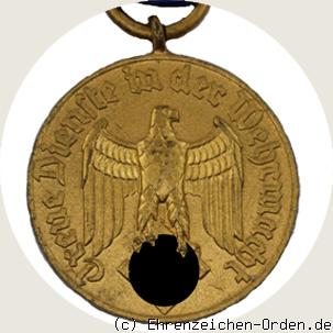 Die Dienstauszeichnungen für die Wehrmacht wurden am 16.März 1936 anlässlich des ersten Jahrestages der Wiedereinführung der allgemeinen Wehrpflicht vom Reichskanzler Adolf Hitler eingeführt. Sie bestand zunächst aus 4 Klassen. Die 1. und 2.Klasse waren Kreuze, die 3. und 4.Klasse waren Medaillen. Am 10.März 1939 wurde das Eichenlaub für die 1.Klasse nach 40 Dienstjahren gestiftet. Zur Dienstzeit wurden auch Zeiten angerechnet die in der alten Wehrmacht und in den anerkannten Freiwilligenverbänden (Freikorps) bis zur Übernahme in die Reichswehr und anschließend in der Wehrmacht geleistet wurden. Unterbrechungen wurden nicht berücksichtigt. Ebenfalls konnten Dienstzeiten der Landes- und Schutzpolizei angerechnet werden wenn die Person in die Wehrmacht überführt wurde.