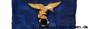 Runde Medaille mit Rand aus vergoldetem Eisen. Oben eine angelötete gewöhnliche Öse mit Bandring. Auf dem Band das entsprechende Hoheitszeichen (hier Luftwaffe in gold).