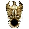 Leicht gewölbtes Kreuz aus vergoldeter Bronze in Form des Genfer Kreuzes. Die Kreuzarme der Vorderseite sind gold bordiert und weiß emailliert. Mittig aufgelegt ein schwarz emaillierter Adler. Die Rückseite ist glatt und vergoldet. Senkrecht eine Anstecknadel mit Gegenhaken.