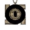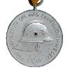 Runde Medaille aus versilbertem Metall mit Rand. Oben eine angelötete gewöhnliche Öse mit Bandring.