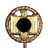 Runde Medaille aus Silber mit erhöhtem Rand. Oben eine angelötete, gewöhnliche Öse mit Bandring.