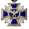 Rundes, durchbrochenes Abzeichen aus versilbertem Eisen oder Buntmetall. Hinten eine senkrechte Anstecknadel.