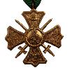 Rundes hohl geprägtes Abzeichen aus Buntmetall. Die vertieften Stellen sind geschwärzt. Im Abstand von je 90 ° jeweils 2 kleine Löcher zum Aufnähen auf die Kleidung.