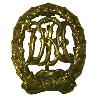 Rundes, durchbrochenes, halbhohl geprägtes Abzeichen aus versilbertem Buntmetall. Die Rückseite mit senkrechter Anstecknadel mit Gegenhaken.