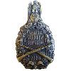 Rundes Abzeichen aus versilberter Bronze. Die Vorderseite emailliert. Auf der Rückseite eine senkrechte Anstecknadel.