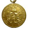 Versilbertes Kreuz aus Buntmetall. Die Kreuzarme der Vorderseite sind emailliert. Mittig aufgelegt ein Schild mit stehendem Schwert dahinter. Die Rückseite glatt und versilbert mittig ein Gewindestift und Schraubscheibe.