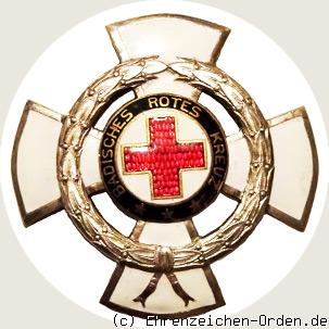 Der Badische Landesverein vom Roten Kreuz stiftete ca. 1920 für treue, langjährige und verdiente Mitarbeiter ein Ehrenzeichen in 3 Stufen, für 10, 25 und 40 Jahre. Das hier gezeigte Ehrenzeichen (2.Stufe) wurde für 25 Jahre verdienstvolle Tätigkeit verliehen. Die 1. Stufe für 10 Jahre war ein Kreuz aus gedunkelter Bronze ohne emaillierte Kreuzarme. Die 3. Stufe für 40 Jahre war ein vergoldetes Kreuz mit weiß emaillierten Kreuzarmen. Da auf den Kreuzen keine Jahreszahlen abgebildet sind, ist anzunehmen dass auch besondere und hervorragende Verdienste mit diesen Ehrenzeichen gewürdigt wurden. Als bisher einziger Hersteller ist Houriet und Wanner aus Pforzheim bekannt. Es kommen auch Kreuze ohne rückseitige Herstellerangabe vor.