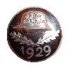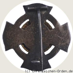 Versilbertes Steckkreuz aus Bronze mit geschweiften Kreuzarmen. Die Kreuzarme mit glatten erhöhten Rändern. Die Innenseiten sind fein gekörnt. Mittig aufgelegt ein rundes, emailliertes Medaillon. Die Rückseite mit senkrechter Anstecknadel und Herstellerbezeichnung.