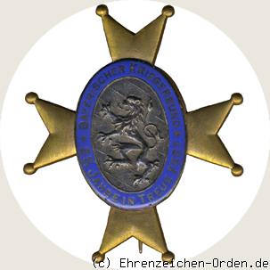 Das hier gezeigte Ehrenzeichen für 25 Jahre in einem Vorstand eines Bundesvereins im Bayerischen Kriegerbund wurde auf dem Abgeordnetentag 1916 gestiftet. Ausgezeichnet wurden Vorstandsmitglieder die als Kassierer, Schriftführer oder 1. Fähnrich 25 Jahre diese Tätigkeit ausgeführt haben. Neben dem Kreuz für 25 Jahre wurden weitere Ehrenzeichen gestiftet die teilweise hochwertig emailliert sind. Für Verdienste im und um den Kriegerbund wurden 2 Klassen gestiftet. Die 2. Klasse versilbert und die 1. Klasse vergoldet und emailliert mit der Aufschrift „DEM VERDIENST“ bzw. „FÜR VERDIENSTE U.D….“. Es gibt noch ein emailliertes Ehrenzeichen für 25 Jahre im Bayerischen Kriegerbund daß wohl nur an Vorsteher oder höhere Mitglieder verliehen wurde. Der Hersteller der Ehrenzeichen für den Bayerischen Kriegerbund war Deschler & Sohn in München, die seit Anfang des Bestehens sowohl Mitgliedsabzeichen und Ehrenzeichen lieferten in den verschiedenen Formen. Die Würdigung langer Mitgliedschaft wurde anfänglich durch Jubiläumsspangen auf dem Band des Mitgliedsabzeichen kenntlich gemacht für 50, 40 oder 25 Jahre. Bei der 3. Form des Mitgliedsabzeichens wurde oberhalb des Schildes die Zahl 40 oder 25 integriert. Ab 1926 sind Ehrenzeichen für 40 Jahre nicht bekannt oder die genannte 1. Klasse wurde statt dessen verliehen. Der Bayerische Kriegerbund gründete sich 1874 kurz nach dem Krieg 1870/71. Die ersten Mitgliedsabzeichen werden auf 1886 datiert. Diese hatten noch die Form eines achtspitzigen, vergoldeten und blau/weiß emaillierten Kreuzes mit goldenen Strahlen zwischen den Kreuzarmen. Die 2. und 3. Form war in Schildform mit langen Bändern unterhalb. Quelle: Peter Schuster, Die Abzeichen des Bayerischen Kriegerbundes bzw. seiner in München und Umgebung einst ansässigen Veteranen und Kriegervereine Teil 1-3, in „Militaria“ Zeitschrift 2005 – 2006.