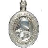 Runde Medaille aus Bronze ohne Rand. Oben eine angelötete gewöhnliche Öse mit Bandring.