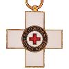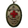 Achtspitziges vergoldetes Kreuz aus Kupferlegierung. Auf der Vorderseite sind die Kreuzarme weiß emailliert, mittig aufgelegt ein rundes Medaillon. Die Ränder der Kreuzarme glatt und vergoldet. Auf der vergoldeten Rückseite eine senkrechte Anstecknadel mit Gegenhaken. Mittig der Hersteller.