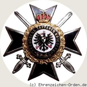 Dieses Kreuz wurde von der Vereinigung Preußischer Kriegsteilnehmer im Deutschen Krieger-Bund 1914 – 1918 e. V. für besonders verdiente Teilnehmer des 1. Weltkrieges gestiftet. Vermutlich war der Besitz des Eisernen Kreuzes 1.Klasse Voraussetzung für die Verleihung, wie bei vielen anderen Landeskriegerverbänden. Es sind 3 verschiedene Varianten bekannt. Die hier gezeigte, mit Kranz ohne wehende Schleifen, die 2. Variante hat am Kranz unten 2 wehende Schleifenenden und die 3. Variante ist golden bordiert mit goldenen Schwertern. (Für genauere Informationen wäre ich dankbar) Da es in der Weimarer Republik keine Orden und Erinnerungsauszeichnungen gab die an den Weltkrieg erinnerten stifteten zahlreiche Krieger-und Soldatenverbände eigene Auszeichnungen. Solche Kreuze wurden von den verschiedensten Landeskriegerverbänden in der Weimarer Republik für ihre Mitglieder in den entsprechenden Farben und Wappen gestiftet. Die Kreuze wurden zwar von den Vereinen verausgabt mussten aber in der Regel selber bezahlt werden.