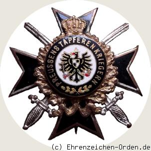 Dieses Kreuz wurde von der Vereinigung Preußischer Kriegsteilnehmer im Deutschen Krieger-Bund 1914 – 1918 e. V. für besonders verdiente Teilnehmer des 1. Weltkrieges gestiftet. Vermutlich war der Besitz des Eisernen Kreuzes 1.Klasse Voraussetzung für die Verleihung, wie bei vielen anderen Landeskriegerverbänden. Es sind 3 verschiedene Varianten bekannt. Die hier gezeigte, mit Kranz ohne wehende Schleifen, die 2. Variante hat am Kranz unten 2 wehende Schleifenenden und die 3. Variante ist golden bordiert mit goldenen Schwertern. (Für genauere Informationen wäre ich dankbar) Da es in der Weimarer Republik keine Orden und Erinnerungsauszeichnungen gab die an den Weltkrieg erinnerten stifteten zahlreiche Krieger-und Soldatenverbände eigene Auszeichnungen. Solche Kreuze wurden von den verschiedensten Landeskriegerverbänden in der Weimarer Republik für ihre Mitglieder in den entsprechenden Farben und Wappen gestiftet. Die Kreuze wurden zwar von den Vereinen verausgabt mussten aber in der Regel selber bezahlt werden.