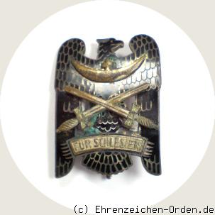Dieses Ehrenzeichen mit Schwertern wurde nach Ausbruch des 3. Polnischen Aufstandes eingeführt. Der Schlesische Adler wurde nun entgegen der ersten Verleihungsserie nicht mehr als Bewährungsabzeichen verliehen sondern als Tapferkeitsauszeichnung. Da viele Kämpfer bereits den Schlesischen Adler von 1918/19 besaßen wurde es notwendig eine besondere Zusatzdekoration einzuführen. Generalleutnant a.D. Höfer stiftete dazu das Eichenlaub. Die Gruppen Nord und Süd verliehen dann eigenmächtig die Schwerter zum Schlesischen Adler um den Tapferkeitscharakter auszudrücken. Die Zentralleitung des S.S.O.S. hat anfangs nur das Eichenlaub verliehen. Später wurden auch Schwerter verliehen. In der Folge entstanden viele Variationen des Schlesischen Adlers, die aber keine Abstufung oder Klasseneinteilung darstellen. Beide Klassen wurden mit Schwertern, mit Eichenlaub oder mit Eichenlaub und Schwertern getragen. Da das Ehrenzeichen wie bisher vom Beliehenen selbst zu bezahlen war, existieren viele verschiedene Ausführungen von unterschiedlichen Herstellern. Der Entwurf des Ehrenzeichens stammte vom breslauer Bildhauer Prof. Theodor von Gosen. Es wurde an alle Kämpfer vergeben, die in den Jahren 1918 und 1919 bei der Verteidigung der schlesischen Heimat beteiligt waren. Diese Auszeichnung bestand aus 2 Klassen. Die 2.Klasse für 3 Monate Dienst und die 1.Klasse für 6 Monate Dienst in dieser Einheit. Im Jahr 1933 wurde der „Schlesische Adler“ in seiner ursprünglichen Form, ohne Schwerter und Eichenlaub, als staatliche Auszeichnung anerkannt. Abweichende Formen unterlagen dem Trageverbot. Eine genaue Verleihungszahl der beiden Klassen ist nicht bekannt. Es sollten aber mehrere tausend Ehrenzeichen beider Klassen verliehen worden sein. Der Schlesische Adler darf auch in der Bundesrepublik Deutschland weiter getragen werden. Quelle: Ingo G. Haarcke, Die Auszeichnungen der deutschen Freikorps und Freiwilligentruppen 1918 – 1921 und ihrer Nachfolgeorganisationen, 2019.