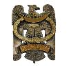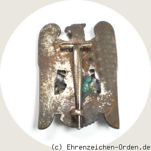Abzeichen in Form eines stehenden Adlers, den Kopf nach rechts. Der Adler ist silbern bordiert und schwarz emailliert. Die Rückseite ist glatt und versilbert. Senkrecht eine Anstecknadel mit Gegenhaken. Die Auflagen sind geklammert bzw. genietet.