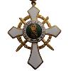 - Auf der Brust eine liegende, silberne Mondsichel, in der Mitte darauf stehend ein Kreuz.