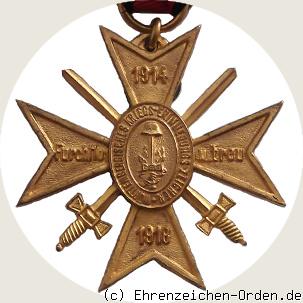 - Auf den Kreuzarmen erhöht: links – Furchtlos -, rechts – u. treu -, oben die Jahreszahl – 1914 -, unten die Jahreszahl – 1918 –
