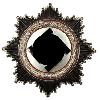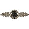 Breite Spange aus vergoldetem Zink. Der Adler separat aufgenietet und altsilbern. Hinten eine waagerechte Anstecknadel.