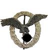 Breite Spange aus versilbertem Buntmetall. Der Adler aus Buntmetall versilbert und getönt. Hinten eine waagerechte Anstecknadel.