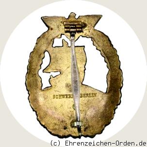 Rückseite: Kriegsabzeichen für Hilfskreuzer- Material: Buntmetall, teils vergoldet, versilbert